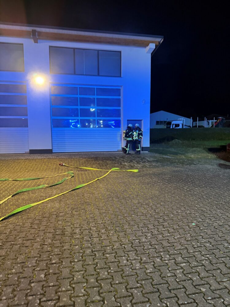 Parallel dazu wurden Löschmaßnahmen im Innen- und Außenangriff eingeleitet sowie eine Riegelstellung aufgebaut, um eine weitere Ausbreitung des Brandes zu verhindern. Die Löschwasserversorgung erfolgte über einen Hydranten in unmittelbarer Nähe, die Einsatzstelle wurde mit umfangreicher Beleuchtungstechnik ausgeleuchtet, um auch bei Dunkelheit sichere Arbeitsbedingungen zu gewährleisten.