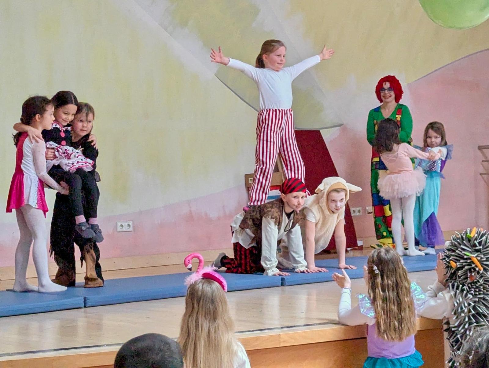 Nach dem Einlass um 14.11 Uhr fiel wenige Minuten später der Startschuss zum Kinderfasching mit einer Polonaise, die direkt Stimmung in den Saal brachte. Im Anschluss präsentierten die verschiedenen Gruppen der SportFreunde ihr Können. Die Kinder der Abteilung Kinderturnen zeigten eine Darbietung zum Thema „Nano vom Planeten X“, und die „PowerKids“ unter der Leitung von Anna Steuernagel und Romina Rehnelt überzeugten mit einer kombinierten Vorführung aus Turnelementen, Akrobatik und einem Cowboy-Tanz.