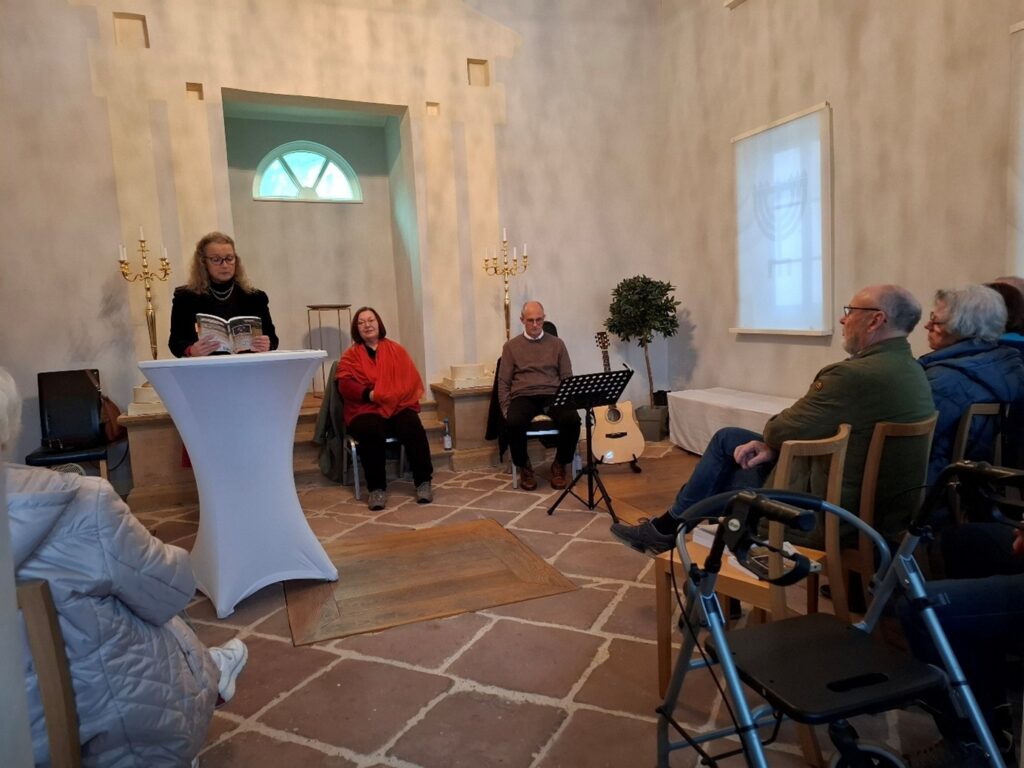 Liebe, Freundschaft und Hoffnung: Darum dreht es sich in Anja Zimmers Nachkriegsroman »Hoffnung aus Papier«. Am Sonntag stellte Anja Zimmer ihren Roman im Rahmen einer Lesung mit Musik in der ehemaligen Synagoge in Romrod vor. Eingeladen hatte der Heimat- und Kulturverein. Musikalisch begleiteten Erika Drogi-Haas mit ihrem klaren und ausdrucksvollen Sopran und Frank Gabian an Bass und Gitarre den Nachmittag.