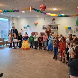 Bunt, fröhlich und voller Musik wurde es im Haus Schlossblick in Romrod, als die „Elefantenkinder“ der ev. Kita Romrod an Weiberfasching zu Besuch kamen. Im Rahmen der Faschingszeit sorgten die Kinder mit zwei Tänzen, Liedern und viel guter Laune für eine unvergessliche Aktion bei den Bewohnerinnen und Bewohnern.