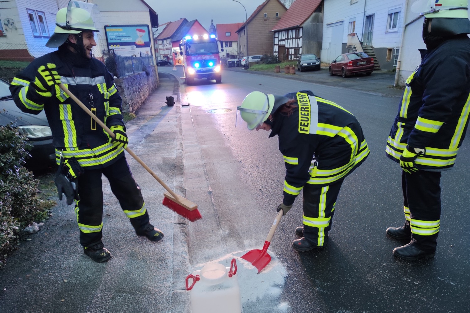 Zu einem Einsatz der Freiwilligen Feuerwehr kam es am Montagabend auf der Bundesstraße 49 in Romrod. Wie ein Feuerwehrsprecher informierte, war im Bereich einer Kurve etwas Öl auf die Straße geflossen. Die glänzend-schimmernde Spur auf dem Asphalt verursachte für die übrigen Verkehrsteilnehmer unangenehme Rutschpartien. „Die Reifen hatten keinen Grip mehr, die Bremswege wurden ungewollt länger“, so der Feuerwehrsprecher. Die Einsatzkräfte brachten ein spezielles Bindemittel aus, um die Rutschfestigkeit auf der Straße wieder herzustellen. Durch den schnellen Einsatz der Feuerwehr konnte ein Eindringen des Öls in einen nahegelegenen Sinkkasten abgewehrt werden. Wie das Öl auf die B 49 gelangte, ist unbekannt. Die Feuerwehr war mit den Besatzungen zweier Löschfahrzeuge im Einsatz.
