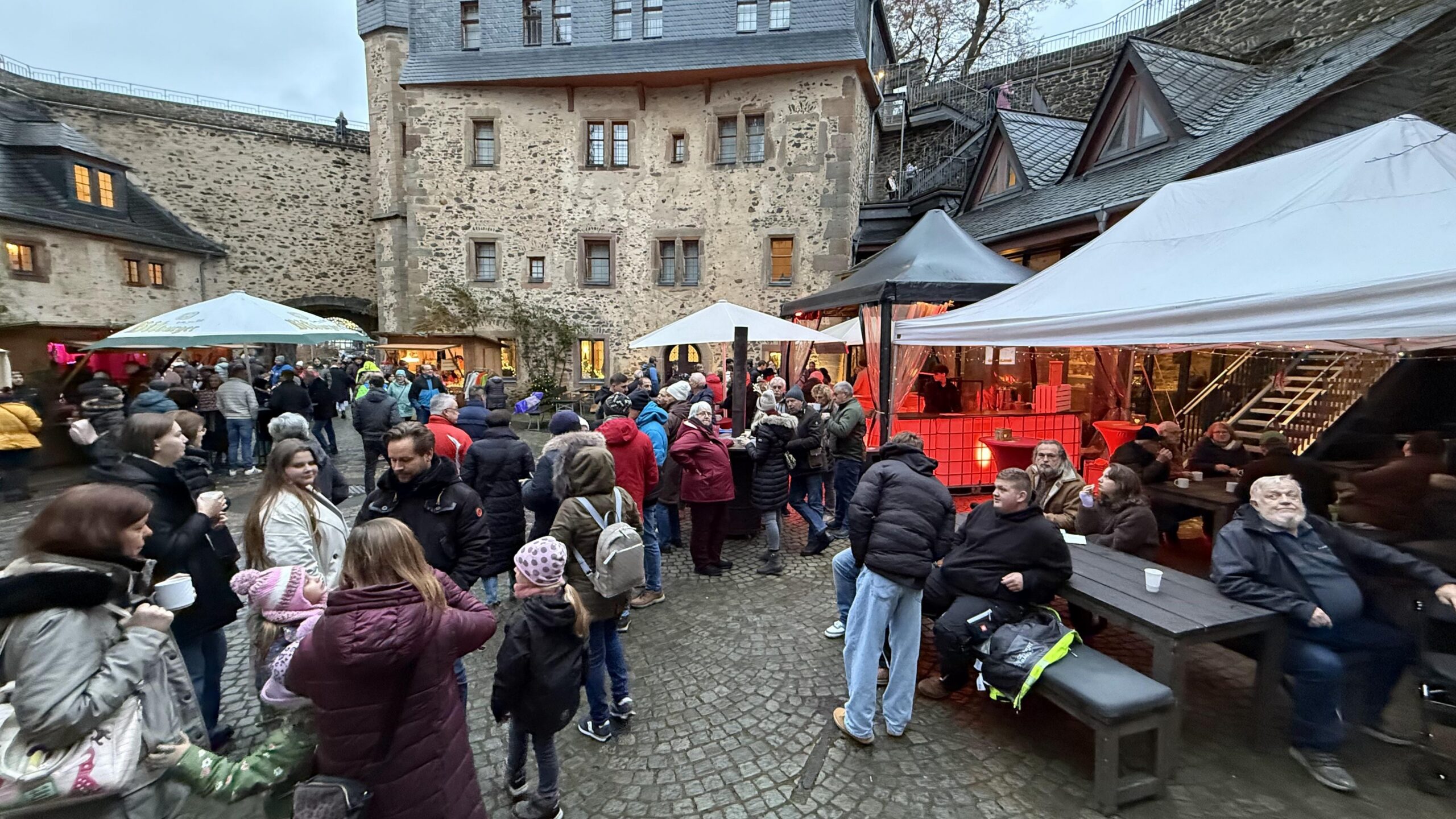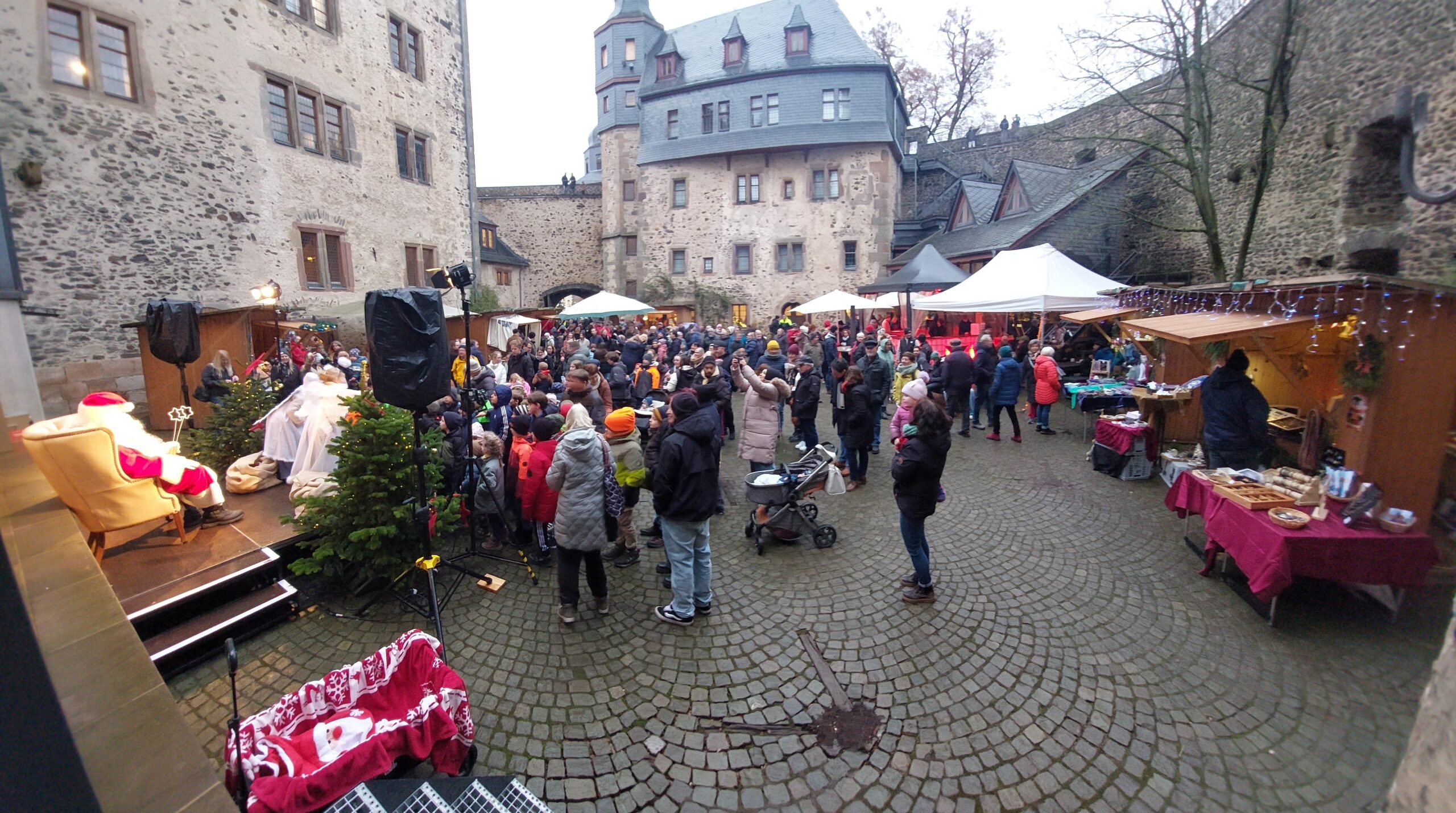 Trotz stetigem Nieselregen und milden Temperaturen lockte der 32. Romröder Weihnachtsmarkt zahlreiche Besucher rund um das historische Schloss an. Über drei Dutzend Buden sorgten mit vielfältigen kulinarischen und kreativen Angeboten für Weihnachtsstimmung, ergänzt durch ein üppiges Rahmenprogramm für Jung und Alt. Die vielen Gäste bewiesen dabei eindrücklich: Geselligkeit und Gemeinsamkeit machen das Event aus, ganz unabhängig vom Wetter!