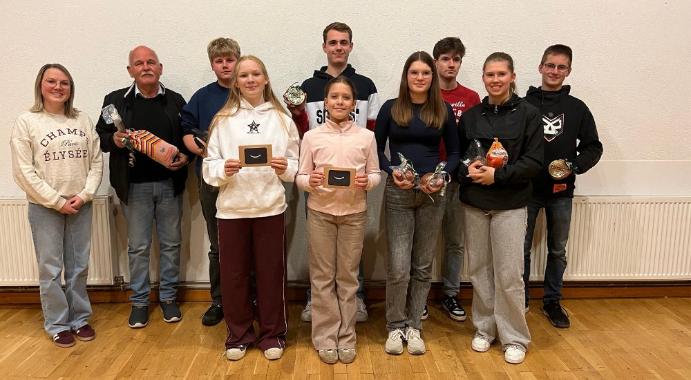 Foto oben: Vordere Reihe v.l.: Anna Saupe, Charlotte Jordan, Mia Habermann, Luisa Habermann. Hintere Reihe v.l.: Vorsitzende Vanessa Hoyer, Kurt Gemmer, Jannes Engel, Felix Saupe, Phillip Zulauf, Lars Döring .