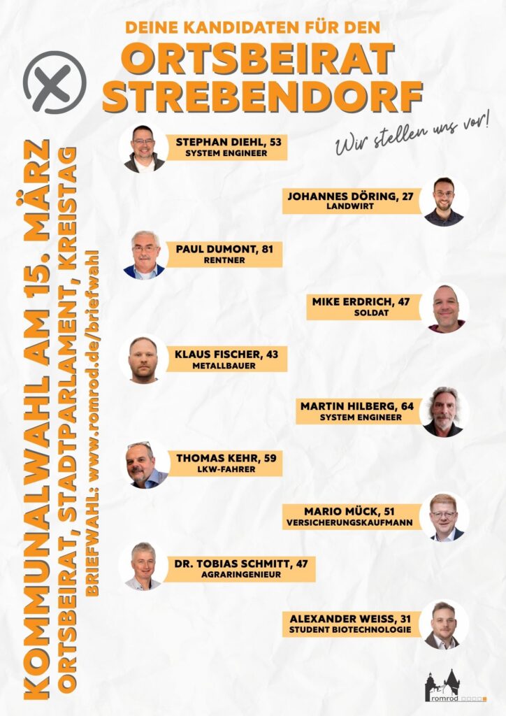 Hier nochmal die Namen der Kandidaten für den Ortsbeirat Strebendorf: