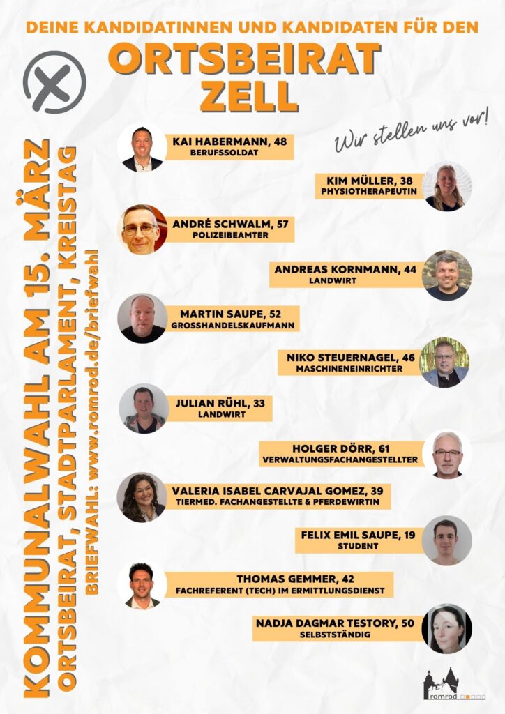 Kommunalwahl 2026: Kandidatinnen und Kandidaten für den Ortsbeirat Zell