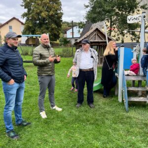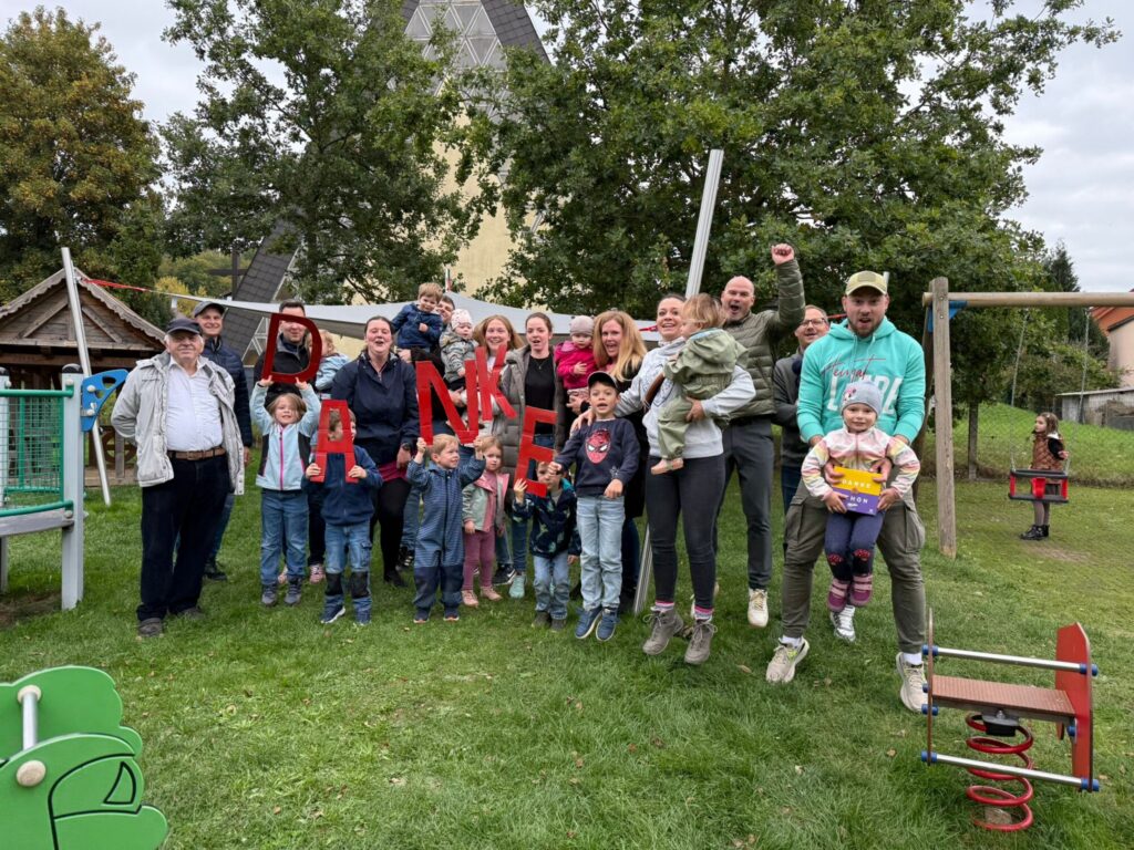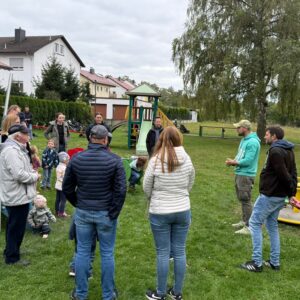 Bürgermeister Hauke Schmehl bedankte sich ausdrücklich bei allen ehrenamtlichen Helferinnen und Helfern sowie bei den Initiatoren der Spielplatzinitiative, „die durch ihr Engagement dieses Projekt möglich gemacht haben“. Ortsvorsteher Fabian Musch hob in seiner kurzen Ansprache die Unterstützung der Stadt Romrod hervor und dankte insbesondere dem Bauhof für die Installation und Inbetriebnahme der Geräte.