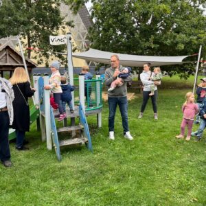 Der Spielplatz hinter der katholischen Kirche in Romrod (Ferdinand-Richtberg-Straße) hat eine tolle Aufwertung erfahren: Am gestrigen Sonntag übergab der Leiter der Romröder Spielplatzinitiative, Ortsvorsteher Fabian Musch, neue Spielgeräte – als da wären zwei neue Schaukeln, eine Spielgerätekiste, ein lang ersehntes Sonnensegel über dem Sandkasten für die Kleinen und ein großes Bodentrampolin. Der Übergabe wohnten auch Bürgermeister Hauke Schmehl und der stellvertretende Ortsvorsteher Willy Eifert bei – und natürlich zahlreiche Kinder!