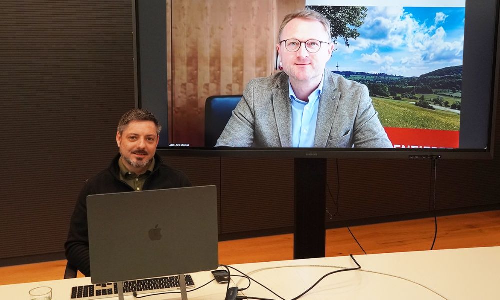 Foto oben: Dr. Jens Mischak (Vorstandsvorsitzender des Region Vogelsberg e.V.) und Dominik Süßmith (Kundenberater im Team-Energiedienstleistung der OVAG) während des Online-Webinars (Foto: OVAG)