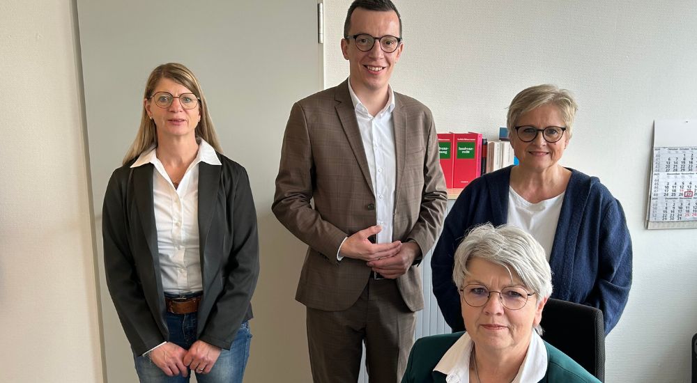 Foto oben: Der Erste Kreisbeigeordnete Patrick Krug mit dem Team der Schuldnerberatung: Elke Diehl (vorn), Yvonne Steller (rechts) und Ina Sachs (Foto: Sabine Galle-Schäfer/Vogelsbergkreis)