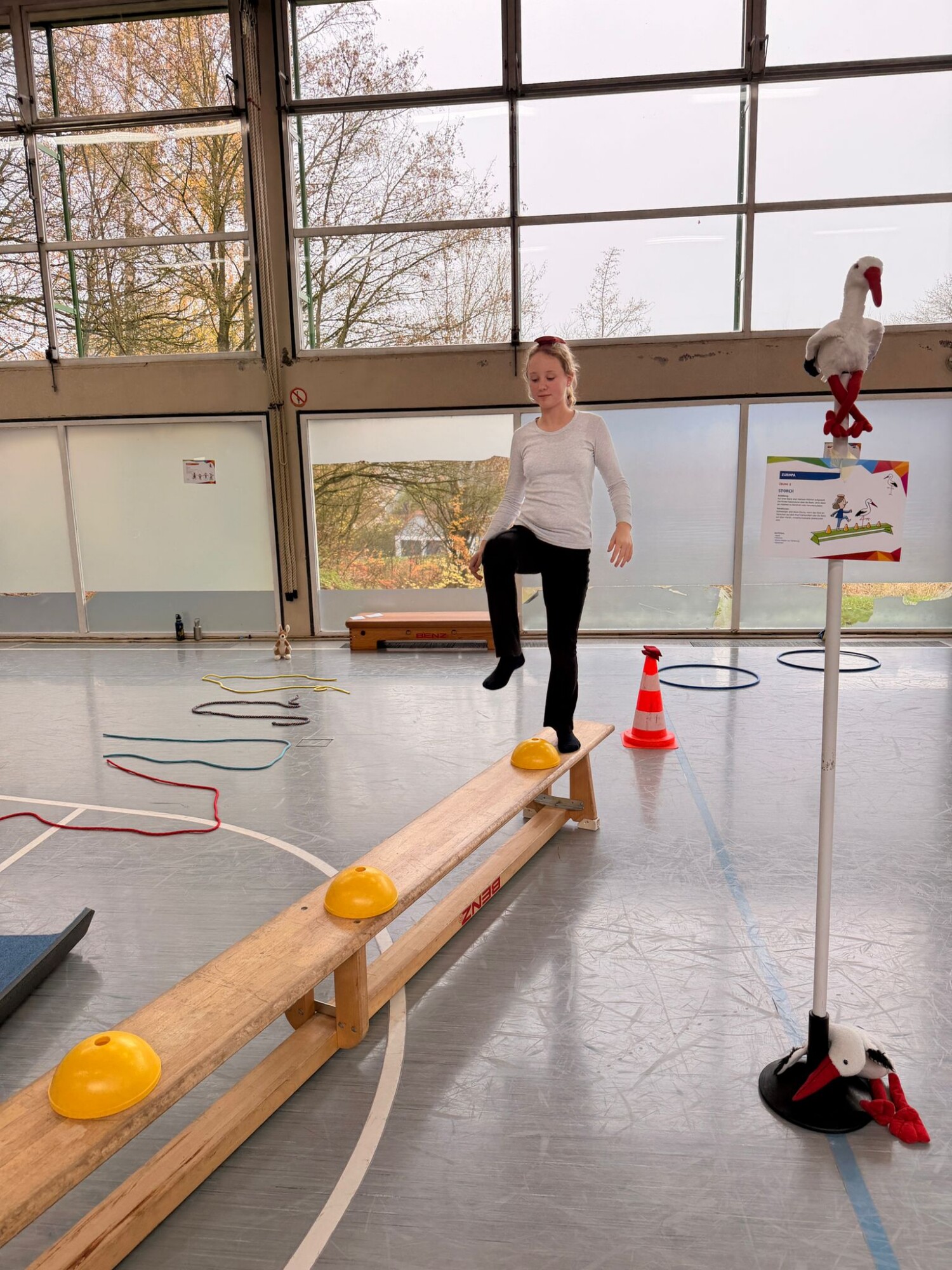 In Nordamerika stand Klettern und Springen auf dem Programm: Als Flughörnchen und Waschbär überwanden die Kinder Kästen und Hindernisse. In Afrika bewiesen sie Koordination und Teamgeist – sie streckten sich wie Giraffen nach den höchsten Blättern und transportierten gemeinsam einen Ball durch einen Parcours, inspiriert vom feinfühligen Elefanten. Schließlich führte die Weltreise nach Australien: Beim Koala war Armkraft gefragt, um sich von Sprosse zu Sprosse zu hangeln, währed beim Känguru die Beinkraft beim Seilspringen getestet wurde.