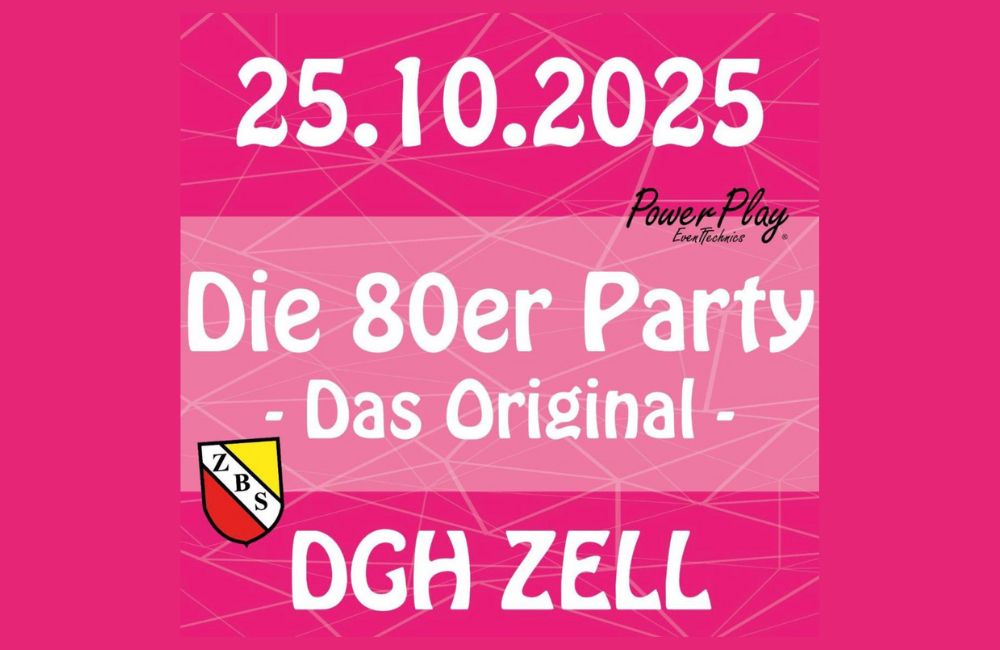 Da ist sie wieder – die legendäre 80er-Party in Zell! Erstmals veranstaltet im Jahr 1999, wird sie dieses Jahr das Finale der 1200-Jahr-Feier einläuten. Die größten Hits der Achtziger, aufgelegt auf Einladung der Zeller Burschenschaft!