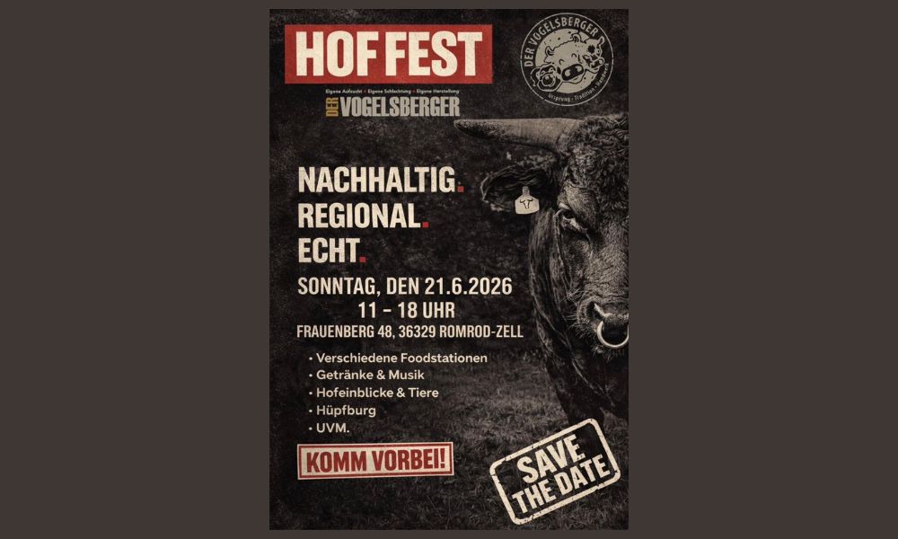 Am Sonntag, 21. Juni, findet von 11 bis 18 Uhr das Hof-Fest bei „Der Vogelsberger“ in Zell statt. Am Frauenberg 48 wird es verschiedene Food-Stationen geben, Getränke und Musik, außerdem Hof- und Tier-Einblicke und einiges mehr – ein Tag für die ganze Familie!
