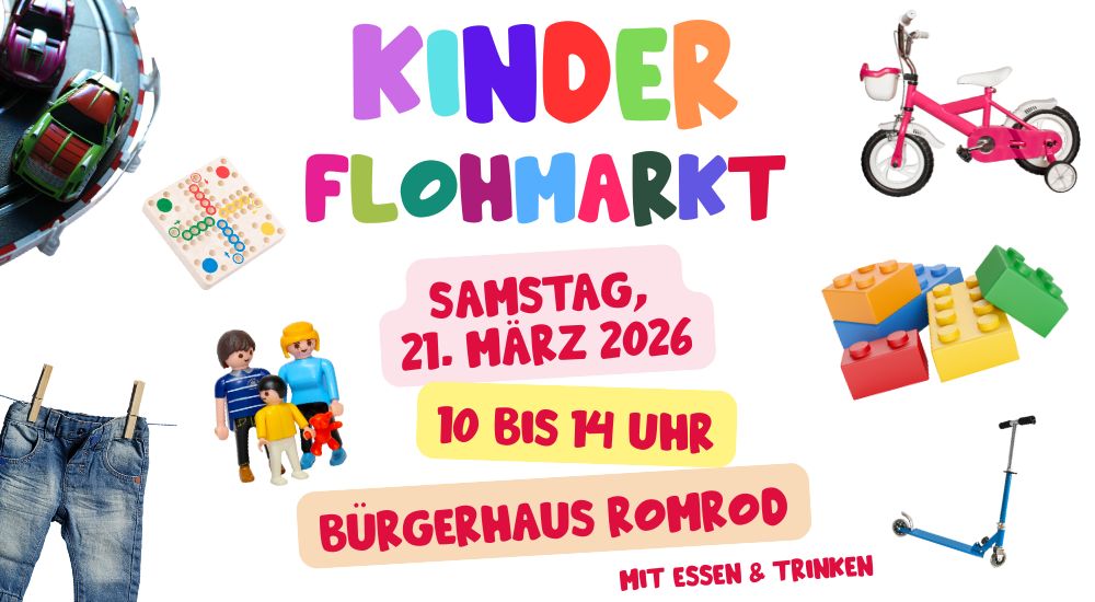 Am Samstag, 21. März, findet von 10 bis 14 Uhr im Bürgerhaus Romrod wieder ein Kinderflohmarkt statt. Organisiert wird die Veranstaltung von Kata Karaskova im Namen der Romröder Freizeithelden.
