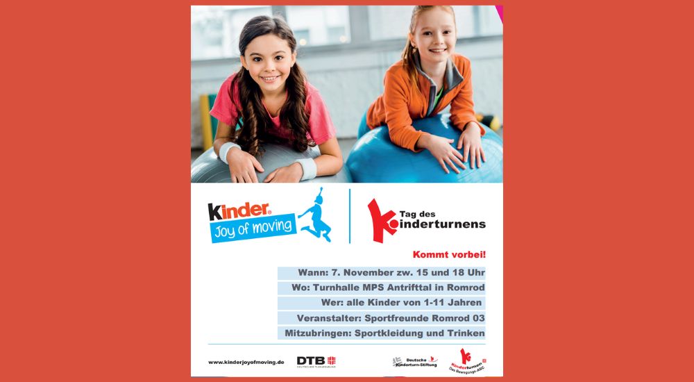 Anlässlich des Kinderturntages am Freitag, 7. November 2025, heißt es: Auf geht’s zu einer spannenden Reise um die Welt! Zwischen 15 und 18 Uhr wird sich die Turnhalle der Mittelpunktschule in Romrod in eine bunte Bewegungswelt mit wilden Tieren, neugierigen Entdeckerinnen und Entdeckern und vielen kleinen Abenteurern verwandeln – beim „Tag des Kinderturnens“ der SportFreunde Romrod.