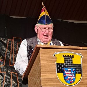Nicht fehlen durfte Otto Ling, Zeller Urgestein und Ehrenbürger der Stadt Romrod, der den Karnevalsklassiker über viele Jahre hinweg organisiert hatte. Zum Jubiläum ließ er die Zeit von 1956 bis 1999 Revue passieren; seinerzeit übergab der Männergesangverein „Germania“ die Organisation an die „Zeller Halbe Vereinigung“. Seine mit vielen Erinnerungen gespickte Büttenrede musste er quasi zwangsläufig schon überziehen!