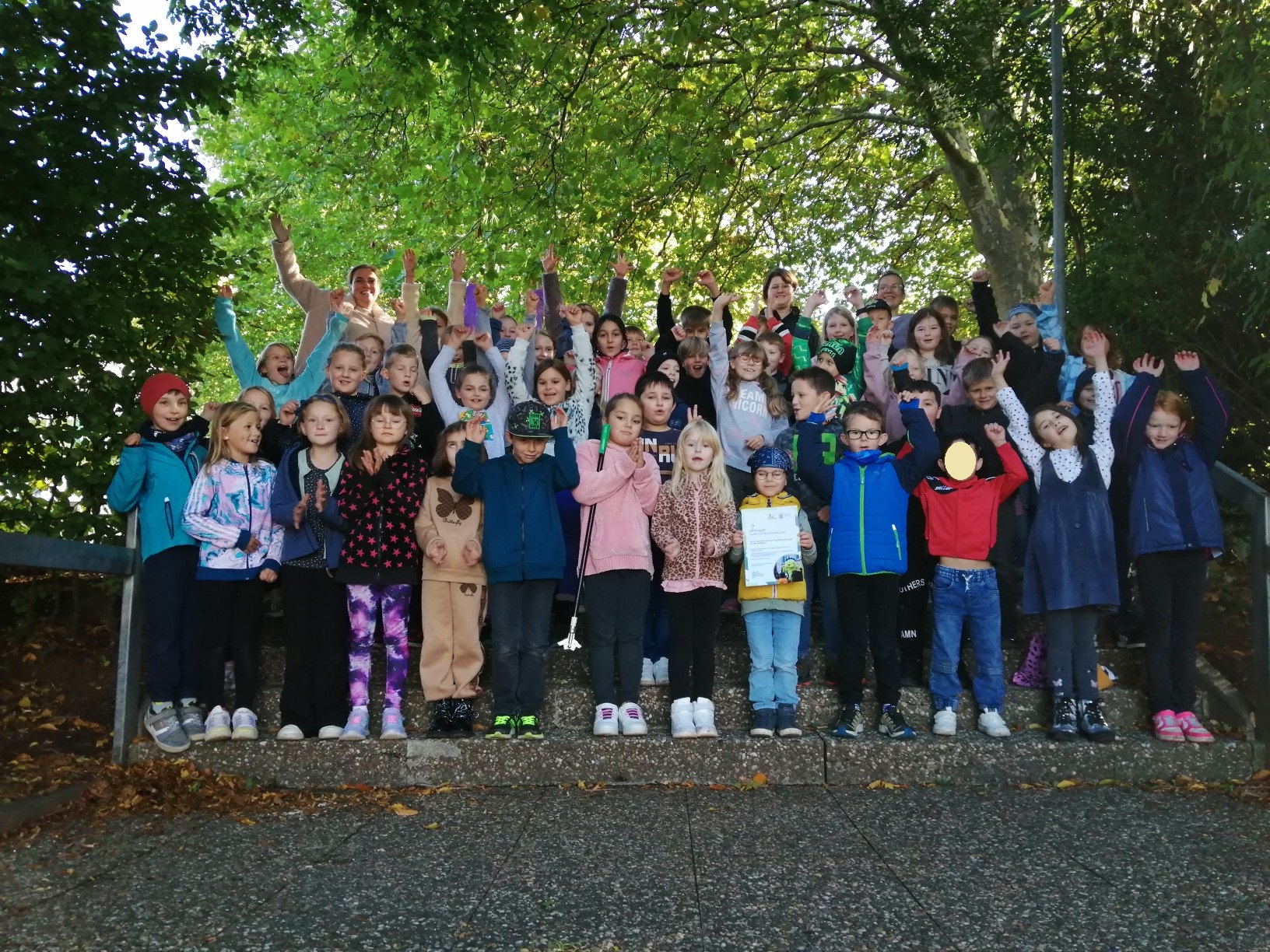 Für dieses „vorbildliche Engagement“ wurden die Kinder der jetzigen zweiten und dritten Klassen nun durch die Hessische Landesregierung und den Hessischen Minister für Landwirtschaft und Umwelt, Weinbau, Forsten, Jagd und Heimat, Ingmar Jung, ausgezeichnet. Auf der Urkunde heißt es: „Ihr habt einen wichtigen Beitrag für eine saubere Zukunft geleistet und Verantwortung übernommen. Dafür bedanke ich mich herzlich“. Die Klassen freuen sich zusätzlich zu einer sauberen Schulumgebung nun über einen Gewinn von 200 Euro.